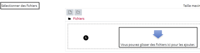 Dans la zone “Sélectionner des fichiers” glissez-déposez le ou les fichier(s) à ajouter dans la zone de dépôt, ou cliquez dans la zone de dépôt pour ajouter le ou les fichier(s) en parcourant vos répertoires :