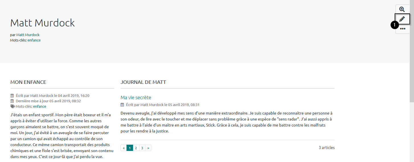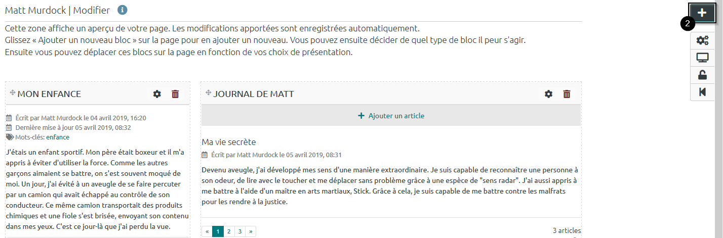 Par défaut, la hauteur allouée au bloc est de 500px, elle est modifiable. Vous pouvez aussi ajoutez des mots-clés à associer au bloc. Si vous souhaitez que le fichier puisse être en partie caché par les utilisateurs qui consultent votre « Page », sélectionnez « Oui » dans le menu déroulant de l’élément « Rétractable ».