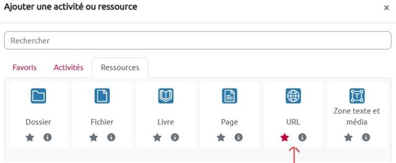 Sur la page ecampus, créer une ressource URL :