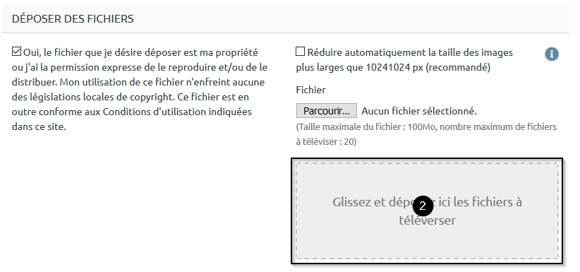 Étape 4 : Assurez-vous que vous avez les droits suffisants pour importer le fichier voulu dans votre eportfolio et le partager. Si c'est le cas, cochez la case située sur la gauche pour attester que vous respectez le droit de la propriété intellectuelle
