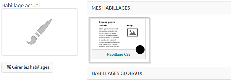 Cette section vous permet de choisir le thème de votre page parmi ceux que vous avez créés et les habillages que vous avez ajoutés à vos favoris.