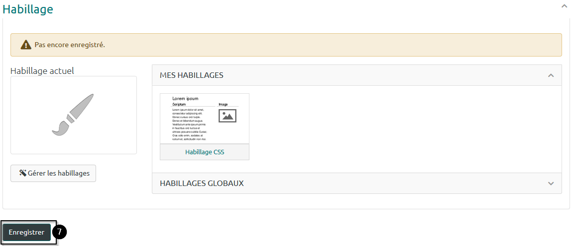Accédez aux « Habillages » en cliquant sur la flèche descendante