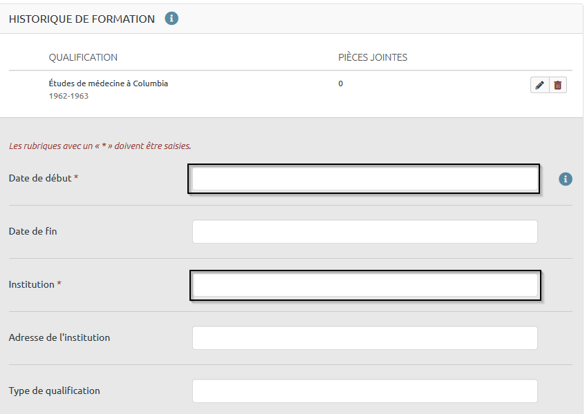 Étape 2 : Renseignez la date de début de votre formation et le nom de l’institution