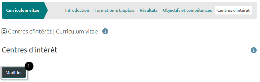 La rubrique « Centres d'intérêt » vous permet de lister vos centres d’intérêt dans l’onglet qui porte le même nom.