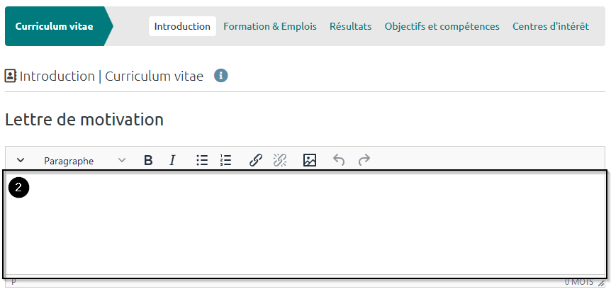 Dans cet onglet, vous pouvez décrire vos objectifs et compétences personnels, universitaires et professionnels.