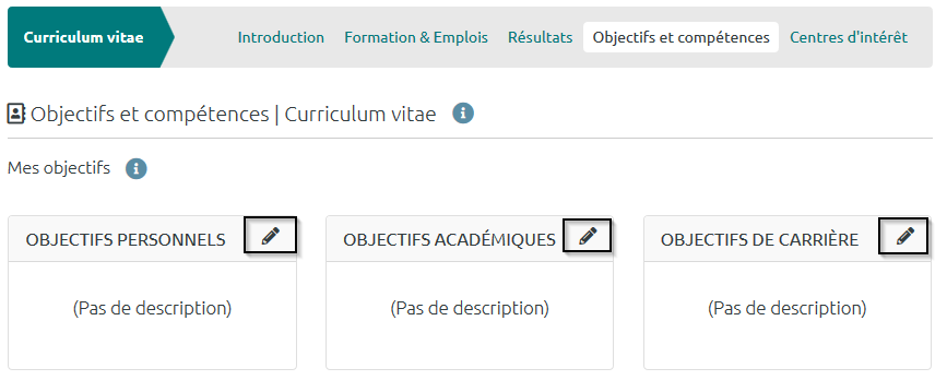 Étape 1 : Pour chaque type d'objectif ou de compétence, cliquez sur l’icône représentant un crayon