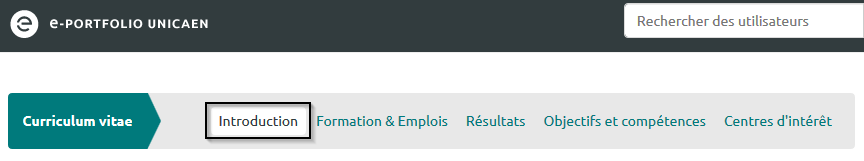 L’onglet « Introduction » de la rubrique « Curriculum Vitae » vous permet de renseigner :