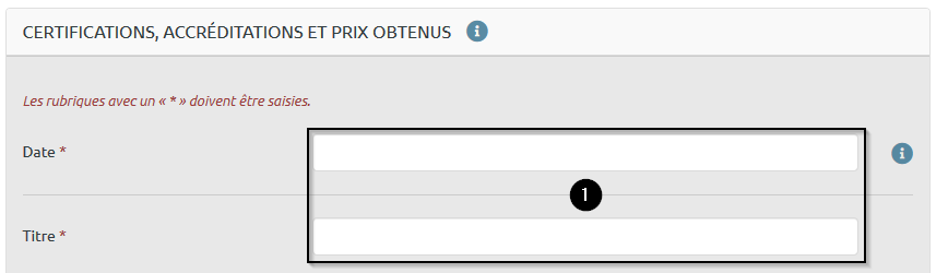 Étape 1 : Renseignez la date et le titre de la distinction reçue