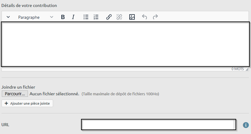 Étape 2 : Vous pouvez ajouter les détails de votre contribution, ainsi qu’une adresse URL vers la description de la publication