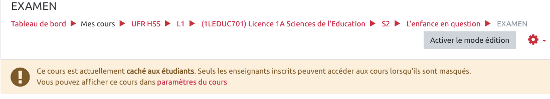 Par défaut, les espaces de cours créés sur les plateformes Ecampus ou FOAD2 sont cachés aux étudiants.