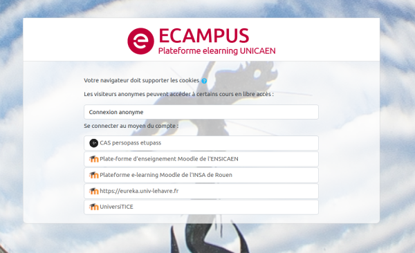 1 - Saisissez dans votre navigateur l'adresse suivante : https://ecampus.unicaen.fr/