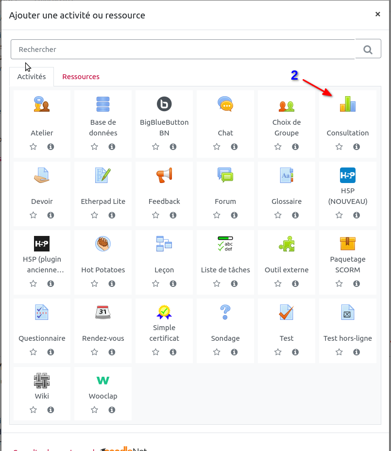 Voir le site officiel de Moodle : Activité Consultation