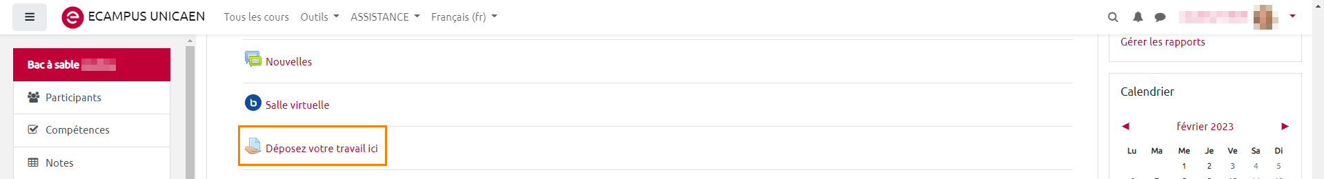 - Cliquer sur l'activité “devoir” dans laquelle se trouvent les travaux remis par les étudiants.