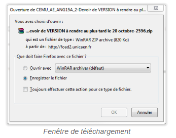 - Nommage des fichiers contenus dans l'archive : PRENOM NOM_IDENTIFIANT_assignsubmission_file_NOM DU FICHIER.extension
