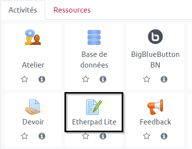Étape 1 : lancer l'ajout d'une activité Etherpad