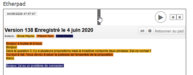 Revoir l'historique d'un Etherpad