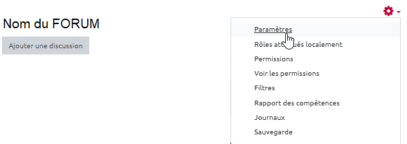 - cliquer sur le forum, puis sur le rouage et dans le menu déroulant sur paramètres :