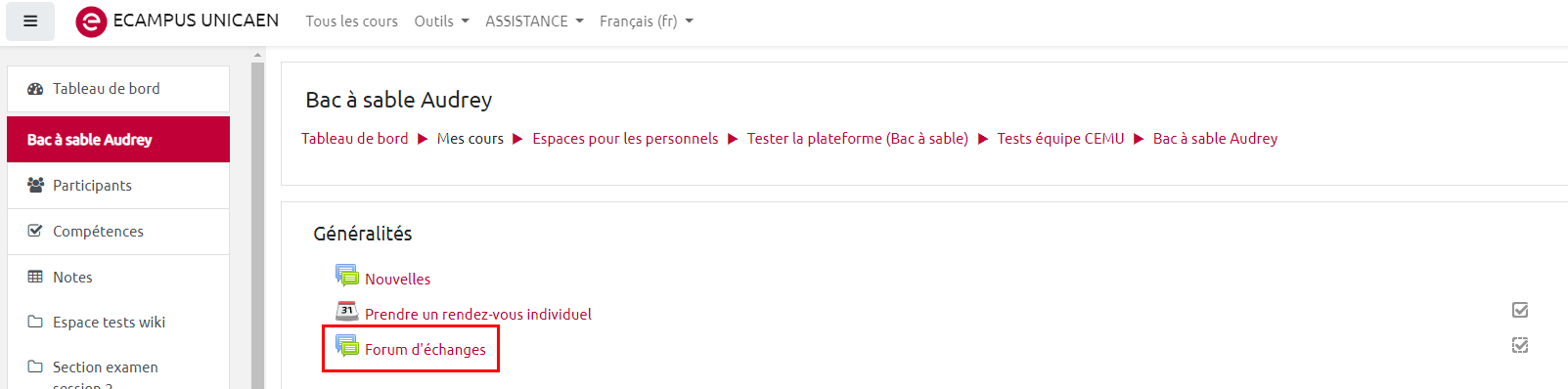 Étape 1 : cliquer sur l'intitulé de l'activité "forum"