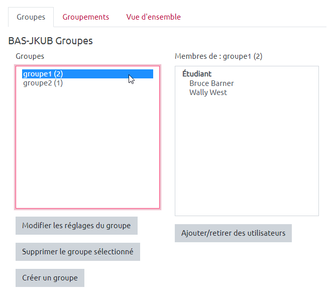 Cliquer sur 'Continuer' une fois que l'importation est terminée donne un aperçu des groupes qui viennent d'être créés. Voici ce que cela donne avec l'exemple de fichier .csv présenté (sur fond noir) dans ce tutoriel.