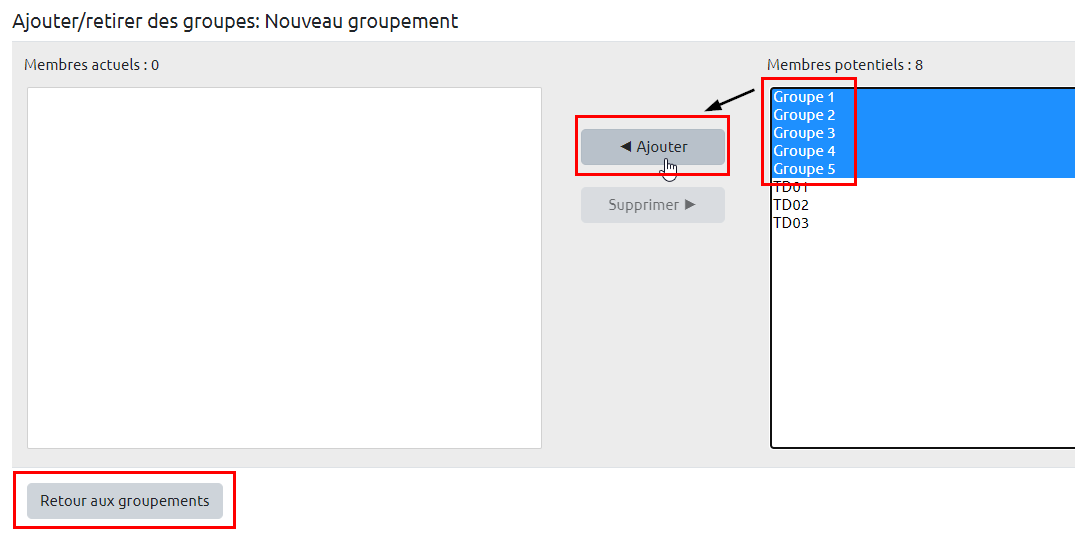 Étape 7 : Ajouter les groupes au groupement