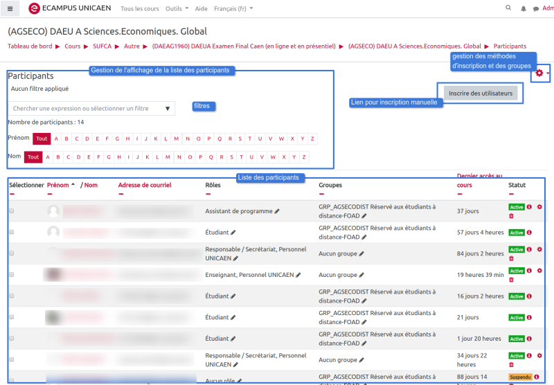 Gérer les inscriptions des utilisateurs (étudiants et enseignants) d'un espace de cours