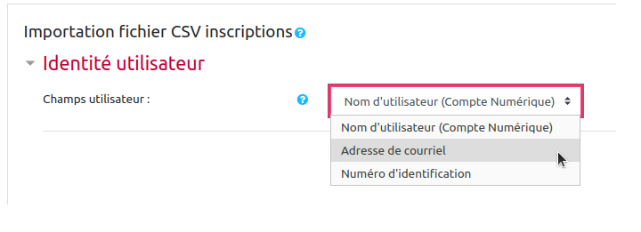 - choisir le champs d'utilisateur utilisé (1ère colonne du fichier précédent)