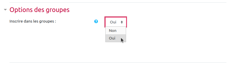 - Préciser si l'inscription dans les groupes doit être prise en compte.