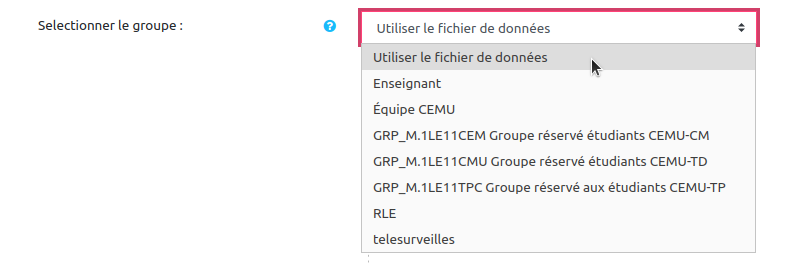 - soit choisir le(s) groupe(s) indiqué(s) dans le fichier (“utiliser le fichier de données”) ;
