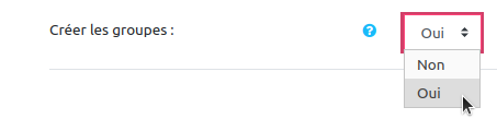 - Si vous avez choisi l'option “utiliser le fichier de données”, vous devez maintenant indiquer si vous souhaitez créer le(s) groupe(s) indiqués dans le fichier. Si le(s) groupe(s) pointé(s) existe(nt) déjà dans l'espace de cours, vous choisirez “Non” à l'option “Créer les groupes”. S'il(s) n'existe(ent) pas encore ou pas tous, choisirez “Oui” à l'option “Créer les groupes”.