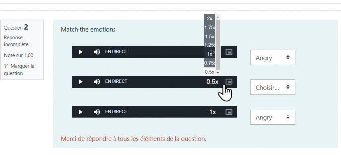 - Vitesse de lecture paramétrable pour les sons et les vidéos :