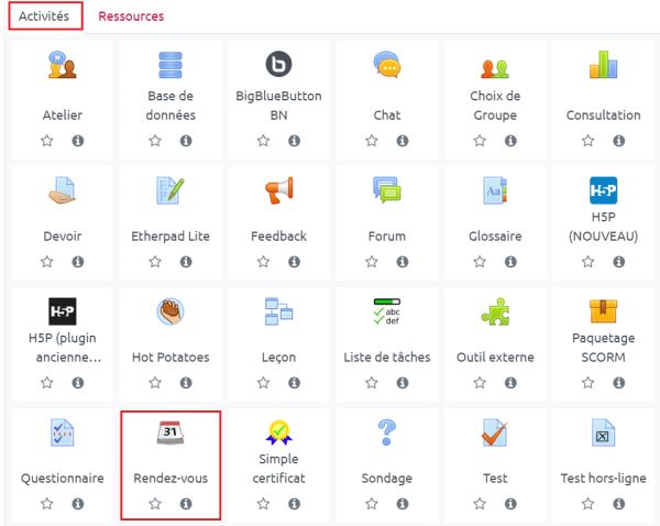Créer et utiliser une activité "Rendez-vous"
