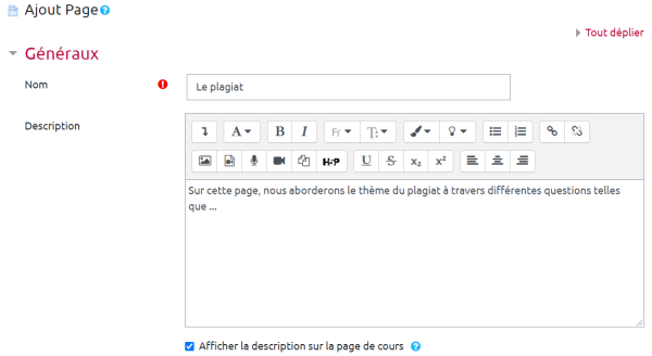 Comme pour toute activité/ressource Moodle, vous pouvez ajouter des restriction d'accès ou modifier l'apparence de votre contenu (ex: cacher votre contenu pour l'afficher quand vous souhaitez). Vous retrouverez ces éléments dans les paramètres complémentaires à la suite du paramètre “contenu” (tel que “réglages courants” ou “restreindre l'accès”).