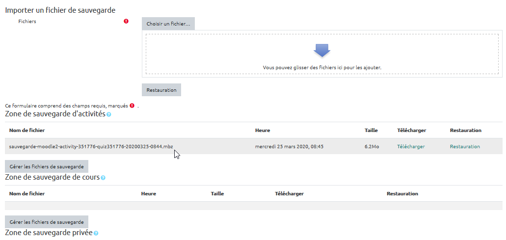 - Dans la zone de sauvegarde d'activité, cliquer sur “Télécharger” :