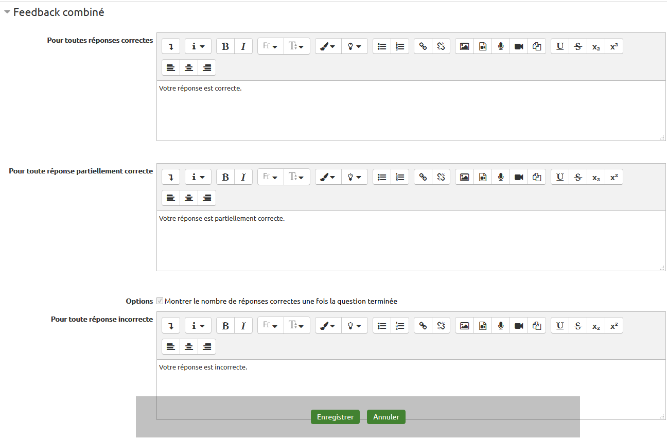 - Associez à vos questions un feedback : commentaire de correction ou de renforcement.