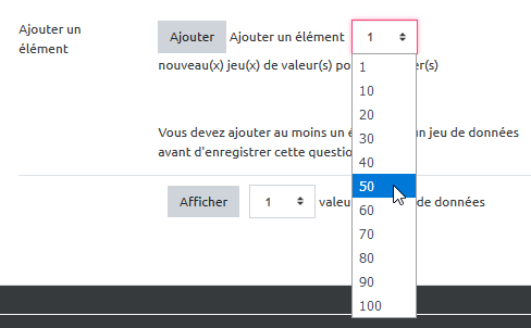 - Sélectionner le nombre de valeurs du jeu qui servira aux étudiants :