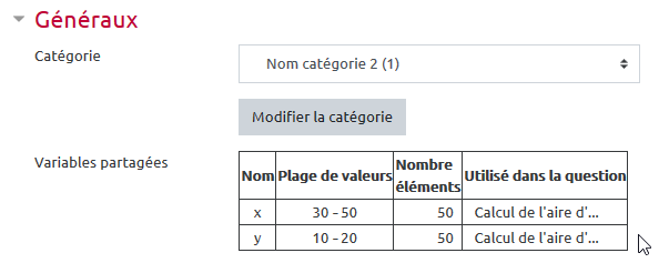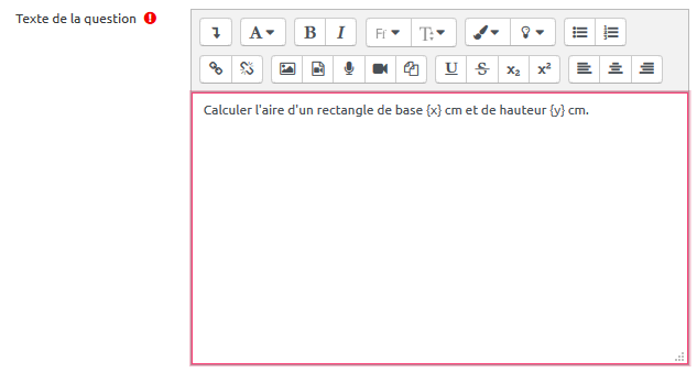 - Indiquer l’énoncé de la question en mettant entre accolades les variables utilisées, ici {x} et {y} :