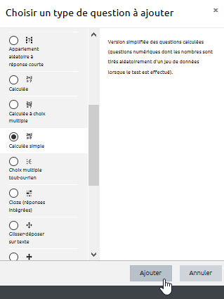 Étape 1 : choisir le type de question "Calculée simple"