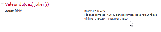 - une tolérance de 0,01 de type Nominal signifie que seront acceptées les réponses comprises dans un intervalle de 0,01 autour de la réponse exacte (+/- 0,01).