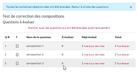 - Toutes les questions à évaluer sont notées. Vous pouvez quitter cette interface.