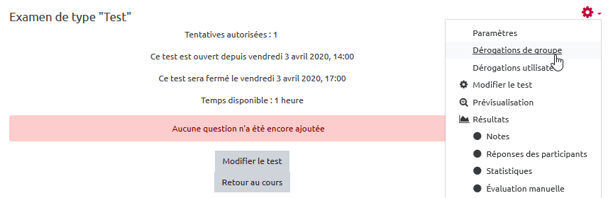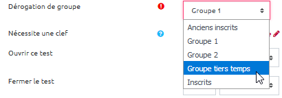 - voici l’interface “Dérogation de groupe” qui s'affiche :