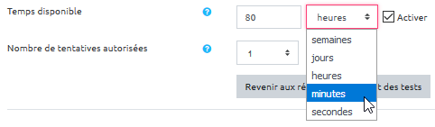 Étape 5 : ajuster le temps de passation
