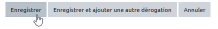 - voici l’interface “Dérogation utilisateur” qui s'affiche :