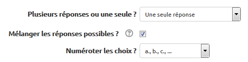Choisissez le type de QCM : une seule bonne réponse ou réponses multiples. Vous pouvez paramétrer un affichage aléatoire des réponses (différent à chaque essai).