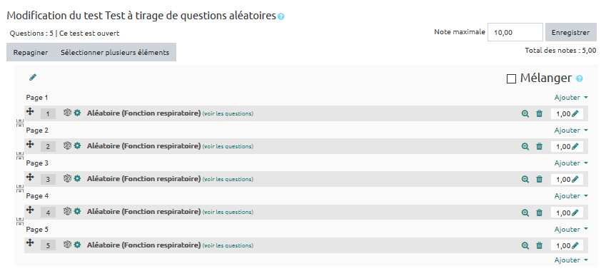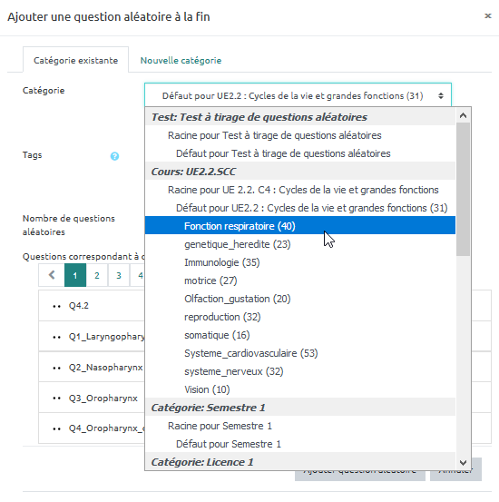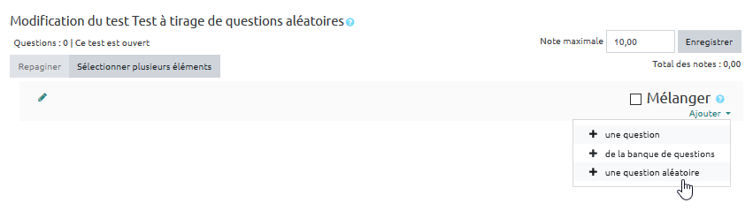 Étape 6 : cliquer sur "Ajouter question aléatoire"