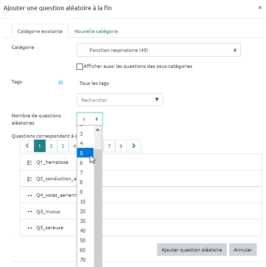 Étape 5 : choisir le nombre de questions à tirer dans la catégorie sélectionnée
