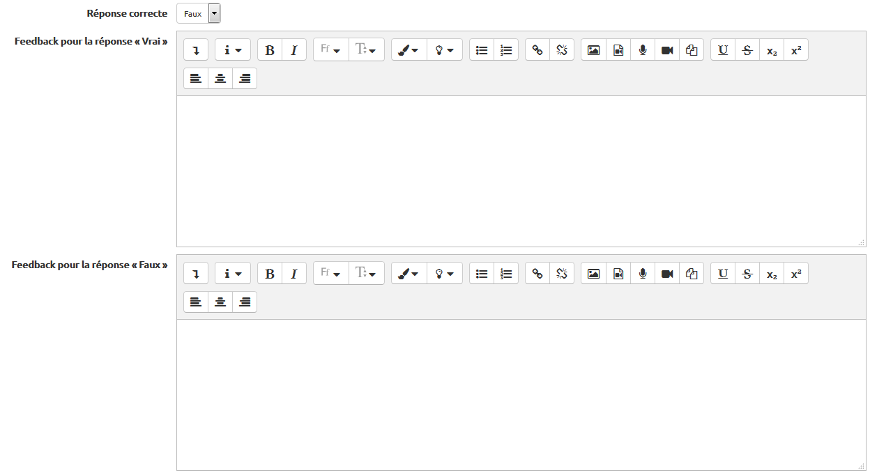 Dans le menu d'ajout de question, choisir l'option “Vrai/Faux” :