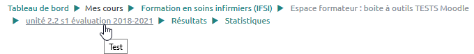 - Cliquer sur le nom du test dans le fil d’Ariane pour revenir à la page d’accueil du test :