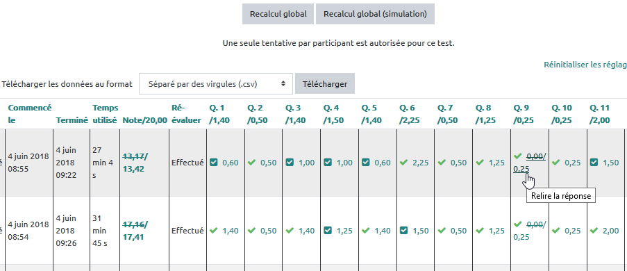 - vérifier que le recalcul a eu lieu dans les résultats des étudiants :