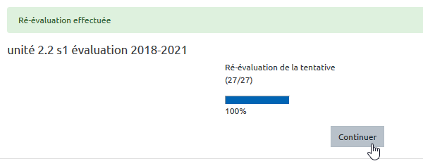 - une fois la réévaluation terminé, cliquer sur “Continuer” :