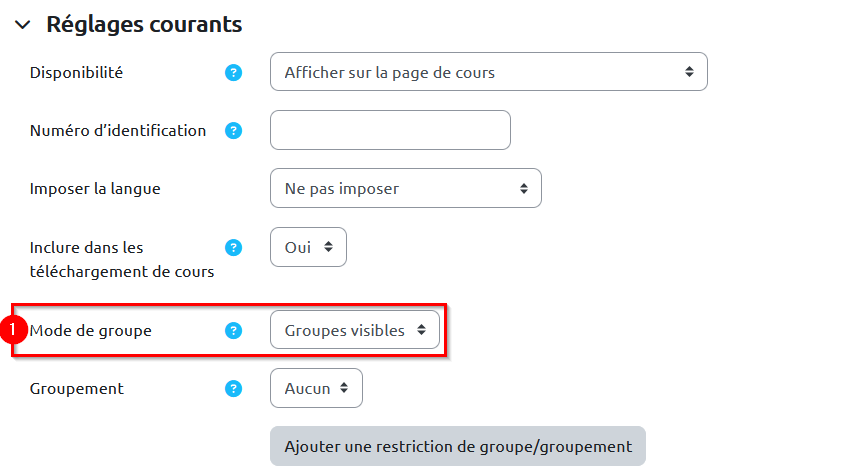À la rubrique “Réglages courants”, sélectionnez “Groupes visibles” dans le menu déroulant pour l'option “Mode de groupe”.